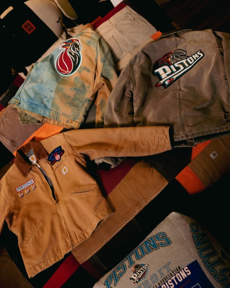 在底特律夹克的基础上,在各个不同位置放上不同大小、不同造型的活塞队Logo,加上颜色材质的变化,带来的14款底特律夹克。