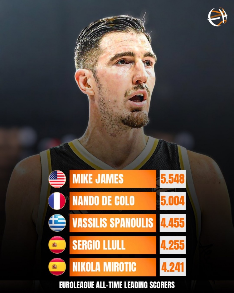 值得一提的是,目前排在欧篮联历史得分榜第一位的是人称“欧洲之王”的迈克·詹姆斯,而他是一位美国球员,现在效力于法国联赛的摩纳哥队。