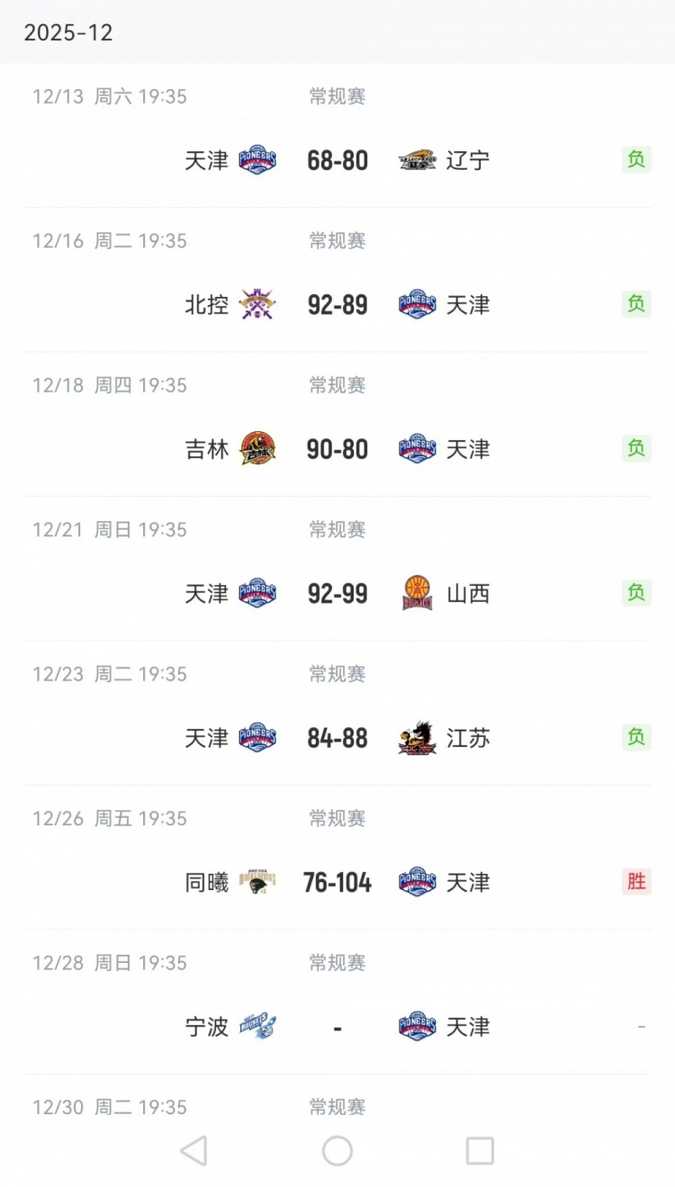 12月26日讯 CBA常规赛,天津104-76大胜同曦。