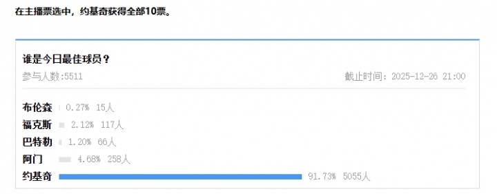 评选规则:候选球员由每场主播提名,吧友投票占比70%,主播投票占比30%,综合占比最高者当选今日最佳。
