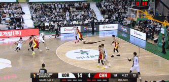 李政玹运球出界判中国队球 韩国挑战成功拿回球权