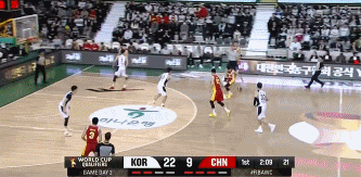 李政玹运球出界判中国队球 韩国挑战成功拿回球权